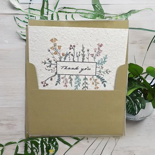 Artisanal quality, plantable seed card. Once planted, the paper will grow into a garden. Give the gift that blossoms.